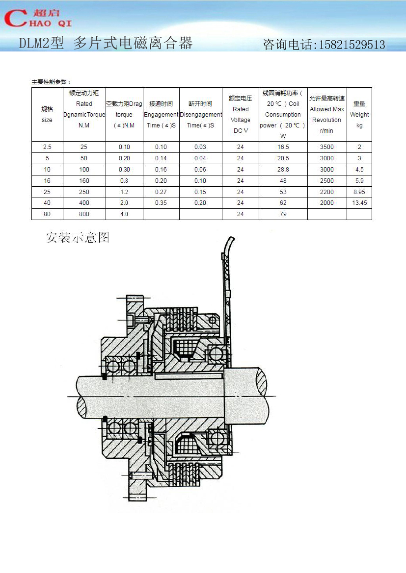 3.離合器線圈電壓波動不超過+5%和-15%的額定電壓;