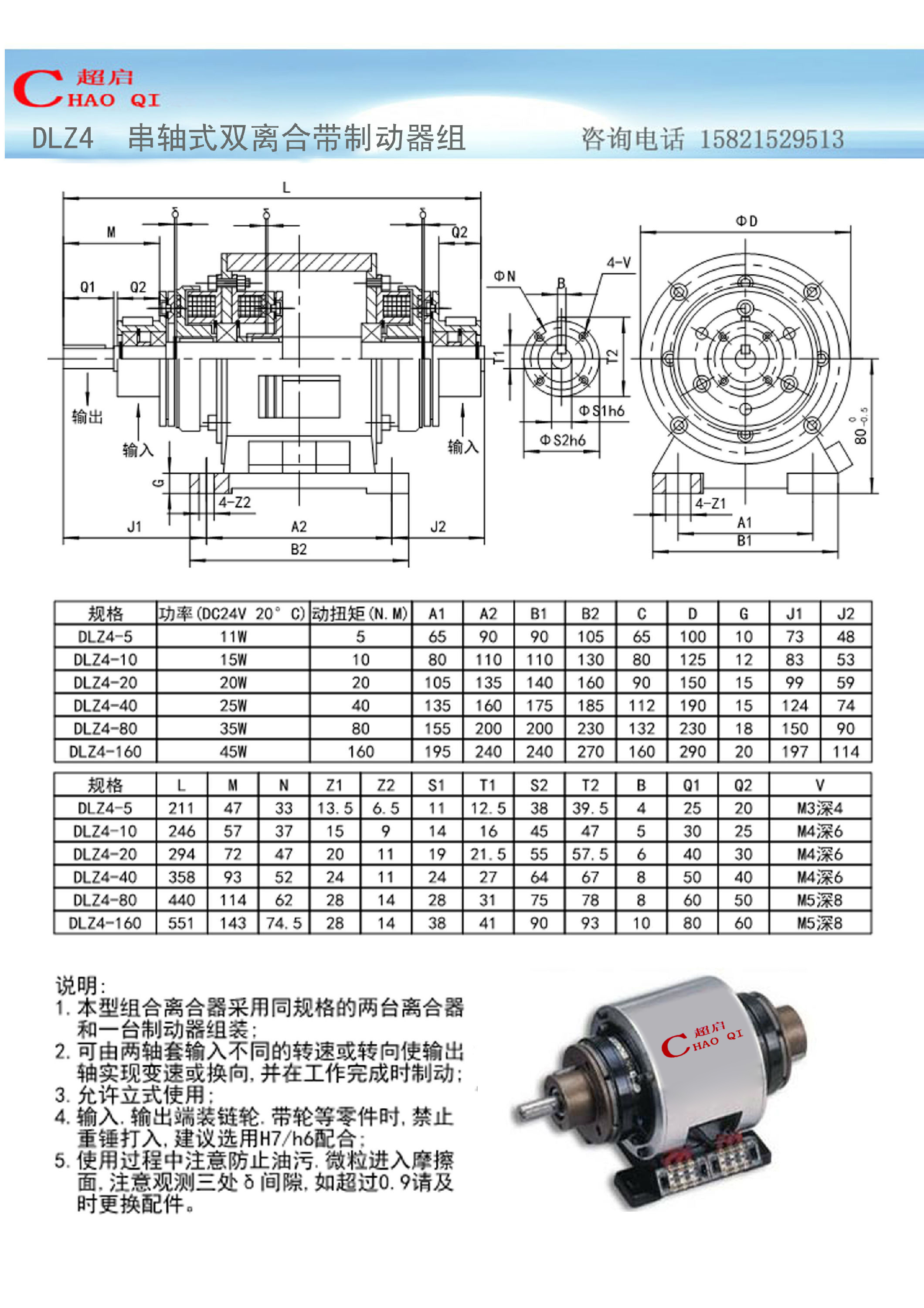 DLZ4 串軸式雙離合帶制動器組